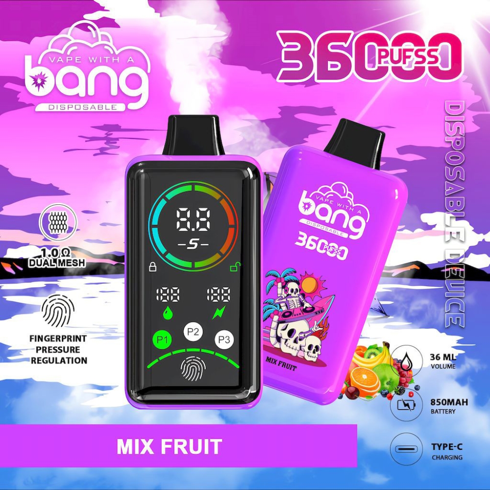 Die Bang 36000 Power bietet anpassbare Leistungseinstellungen, die Ihrer Stimmung entsprechen, und verfügt über berührungssteuerungen, die die Bedienung lächerlich einfach machen. Ein Vollbild-Display ermöglicht es Ihnen, alles in Echtzeit zu verfolgen, während eingebaute Sicherheitsmerkmale für ein sicheres Dampferlebnis sorgen.
