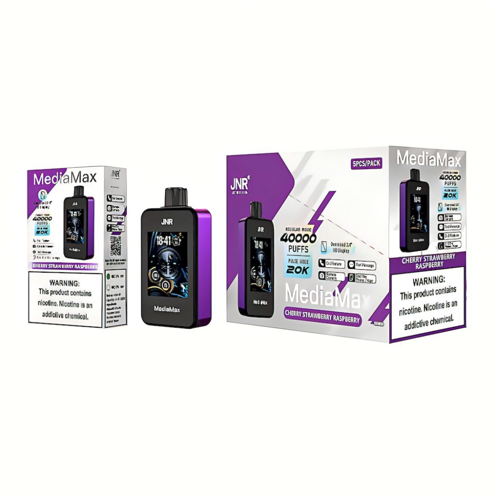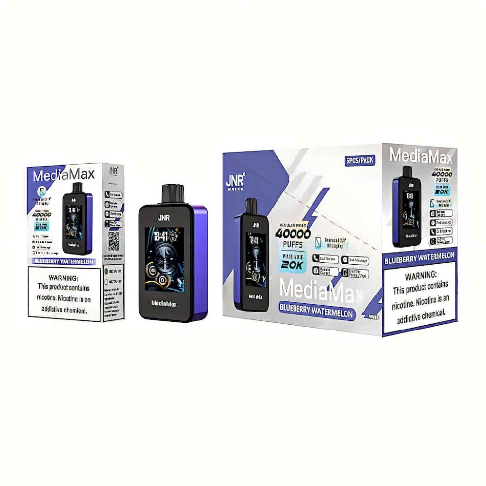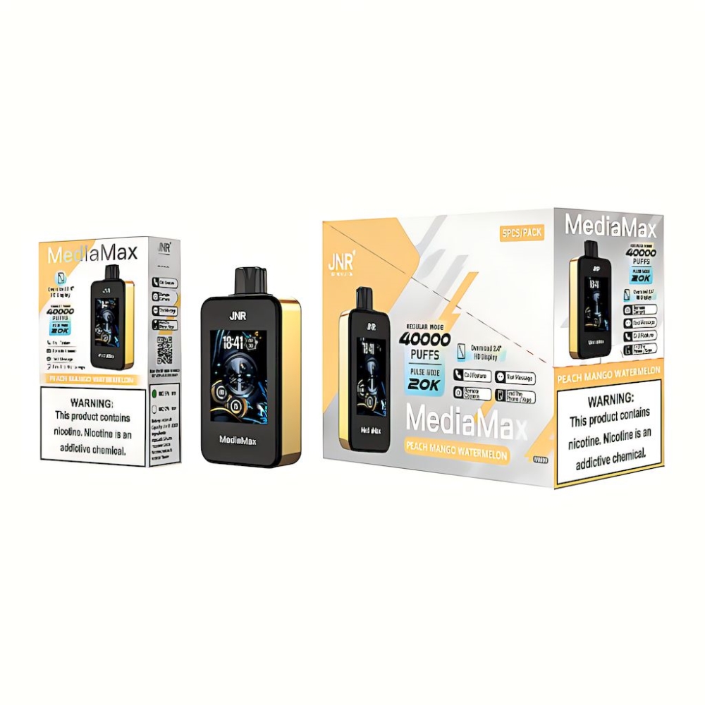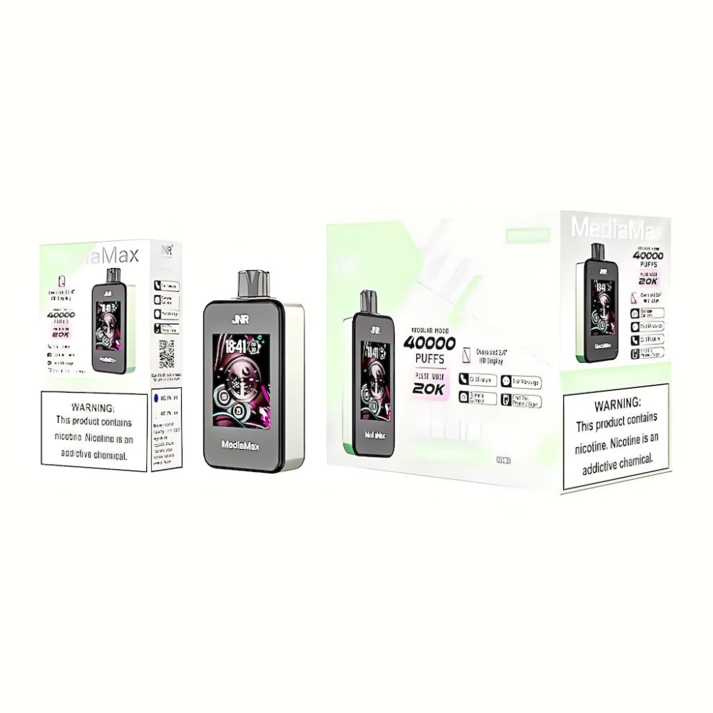JNR MediaMax ist ein revolutionäres Einweg-Vape, das die Grenzen des Geschmacks überschreitet und Ihre Sinne erweckt. Mit seinem 2,4-Zoll-HD-Bildschirm zieht es die Aufmerksamkeit auf sich und ermöglicht Ihnen, verschiedene Ausgangsleistungsmodi nach Ihren Vorlieben zu genießen. Steuern Sie Ihre Erfahrung mühelos über die benutzerfreundliche App und Bluetooth-Verbindung.